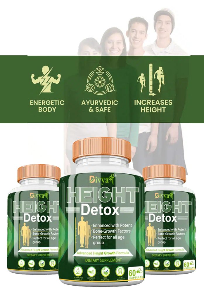 Divyashree Height Detox Capsules are made from natural herbs that help you grow taller in a healthy way. They make your bones strong, give you more energy, and keep you active. These capsules are safe for everyone, especially for teens who want to increase their height naturally.